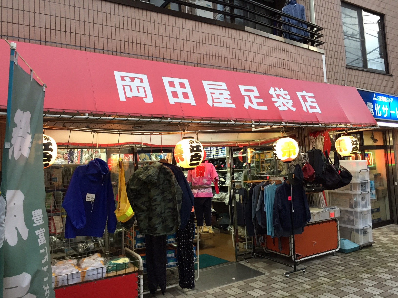 近場で試着して、ダボシャツ(鯉口シャツ)や股引を買えるとこないかと探してみたら、東急田園都市線「溝の口駅」から徒歩約4分の場所にある「岡田屋足袋店」を見つけました!