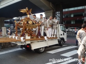 トラックで移動する神輿