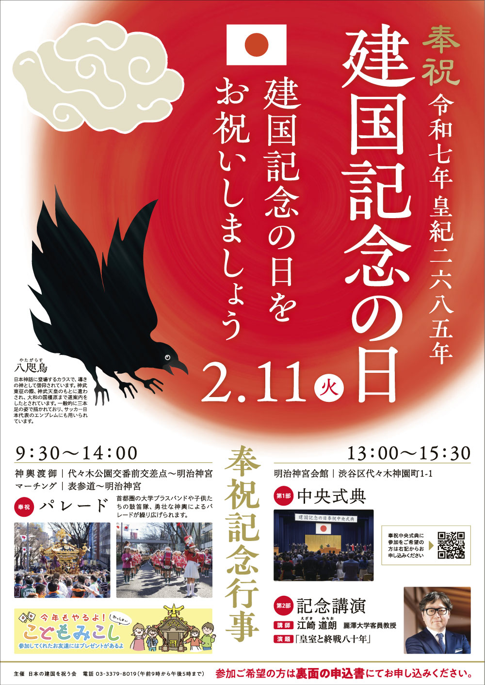 毎年同じように、2月11日(祝日)に「建国記念の日 奉祝パレード」が開催されます。